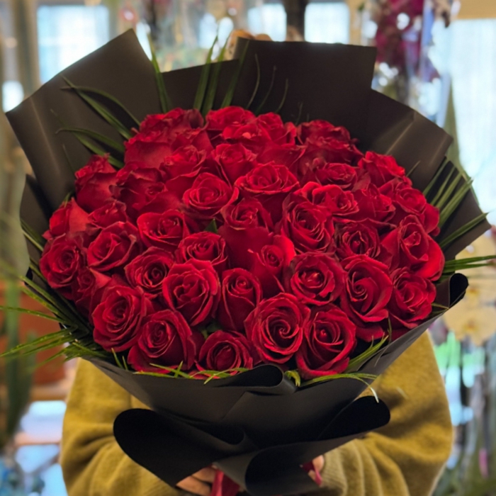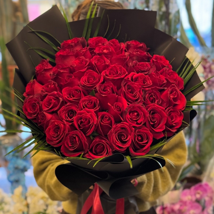 41 adet taze ve canlı kırmızı gülden özenle hazırlanan bu özel buket, aşkı, tutkuyu ve derin duyguları anlatmanın en etkileyici yoludur. Siyah modern ambalajı ve kırmızı kurdelesiyle şık bir görünüm sunan 41 kırmızı gül buketi, özel günlerde unutulmaz bir sürpriz yapmak isteyenler için mükemmel bir tercihtir.