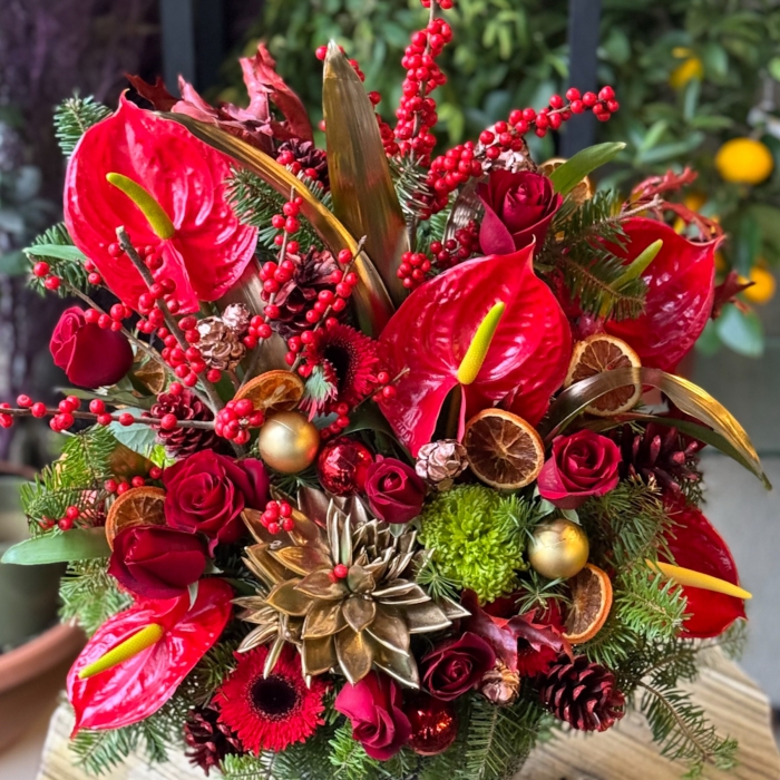 Değerli Müşterimiz, mevsim itibariyle görsele en yakın en taze ürünlerden hazırladık tasarımı. Kuru portakallar yaz mevsiminde bozulduğu için kullanmadık.